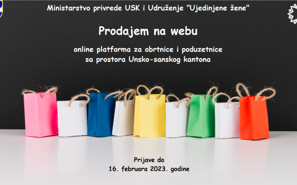 Udruženje „Ujedinjene žene“ u okviru projekta „Prodajem na webu“ svim poduzetnicama i obrtnicama sa prostora Unsko-sanskog kantona nudi besplatnu online platformu za reklamiranje i prodaju vlastitih proizvoda i usluga. Projekt finansira Ministarstvo privrede Vlade USK, a partner u projektu je Obrtnička komora USK. Ako imate ili pokrećete vlastiti obrt, prijavite se! Za poduzetnice i obrtnice […]